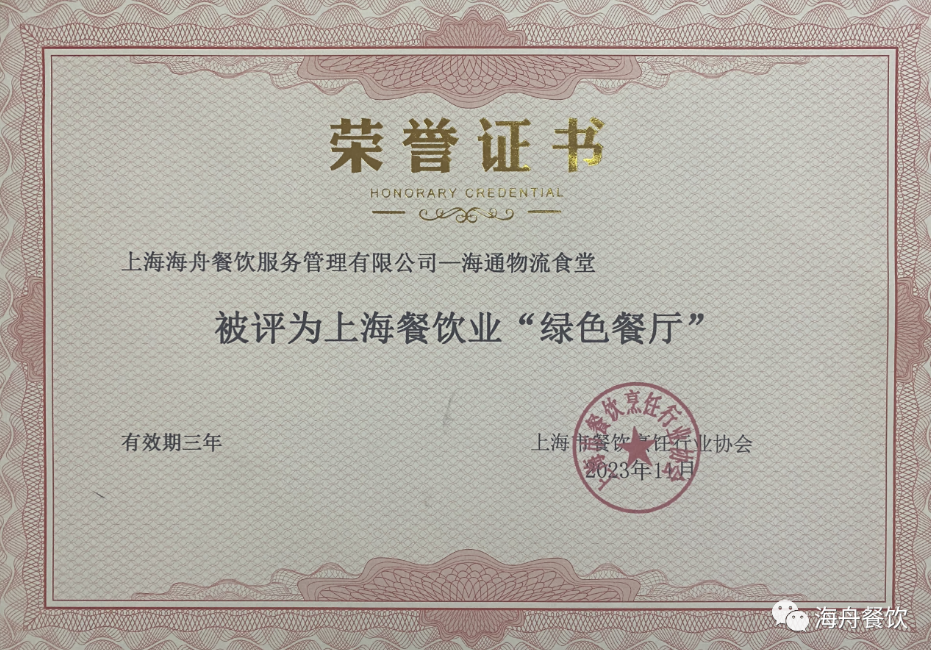 我司新增兩個“綠色餐廳”殊榮 | 動態(tài)新聞 | 行業(yè)洞見 | 上海海舟餐飲服務(wù)管理有限公司